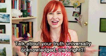 3. I cannot wait to review this – you’re so lucky to have an ARC! Love The Lizzie Bennet Diaries, rewatched them all when we did Pride & Prejudice in one of my college courses this year. I like to think it counts as study ;) Excellent review, and loved the gifs!